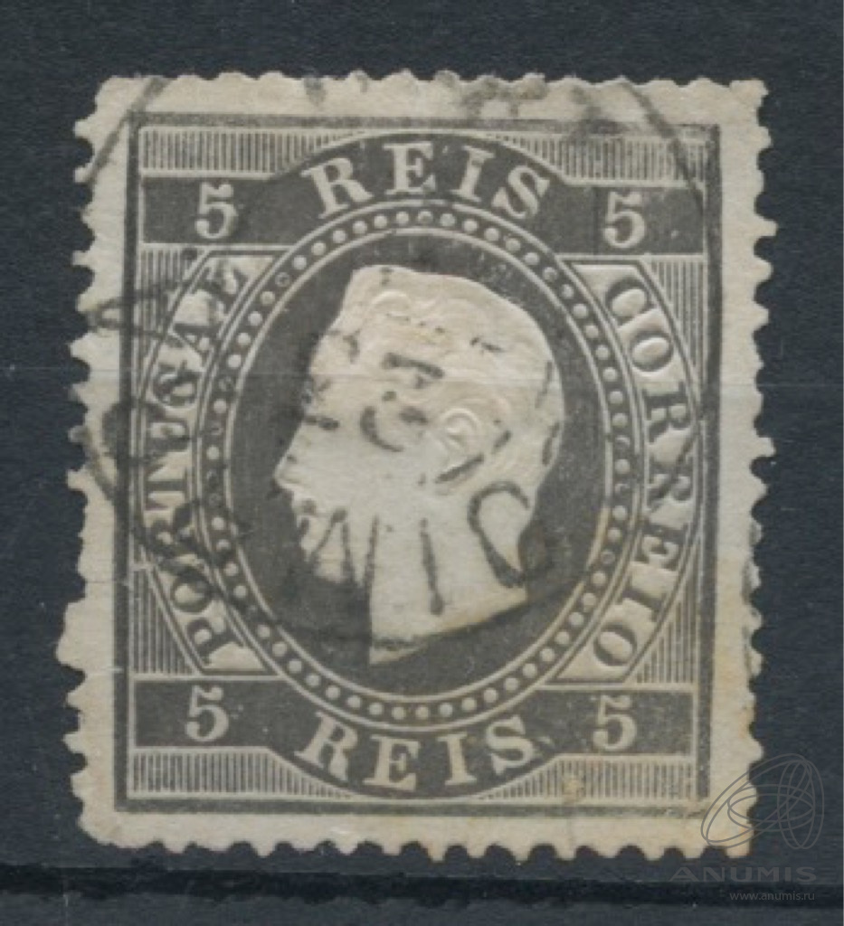 Прошедшая почту марка 5 рейс «Король Луиш I» перфорация 13 ½. редкая, стоимость по каталогу = 8,6 USD для б/у 1870 года Аукцион: Anumis | 04.04.2023 |