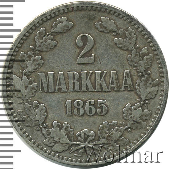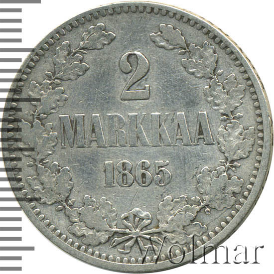 Реверс монеты 2 марки 1865 года S