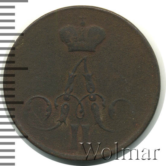 Аверс монеты 1 копейка 1855 года ЕМ Александр II