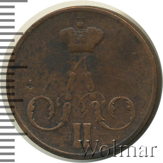 Цена на монету 1 копейка 1855 года ЕМ Александр II на сегодня, 7 декабря 2025 года