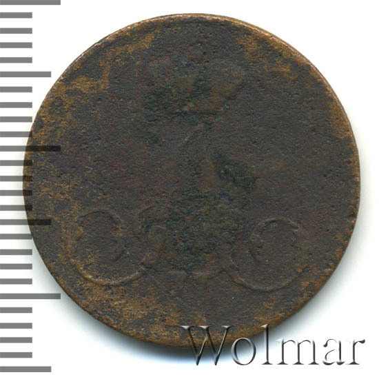Реверс монеты 1 копейка 1855 года ЕМ Александр II