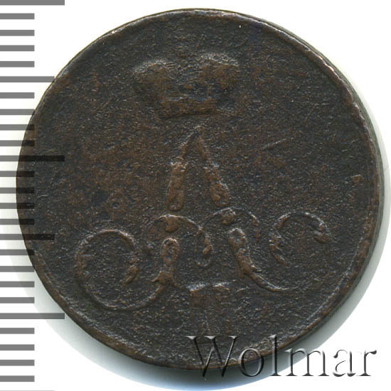 Реверс монеты 1 копейка 1856 года ЕМ