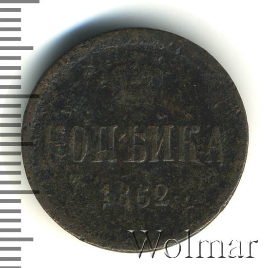Цена на монету 1 копейка 1862 года ЕМ на сегодня, 23 ноября 2025 года