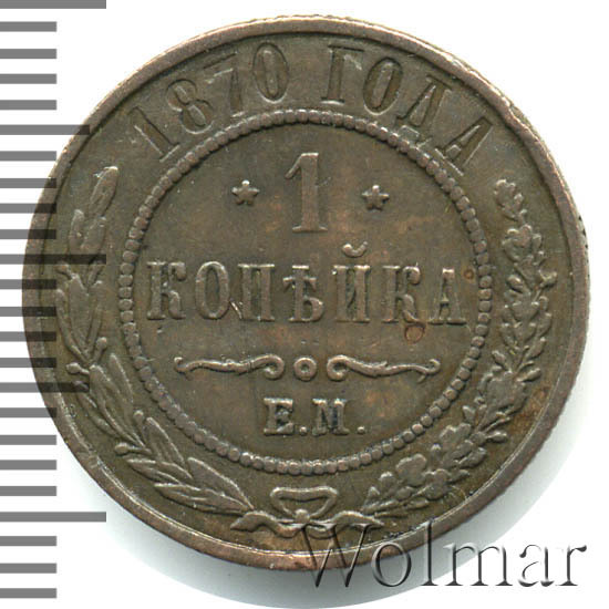 Цена на монету 1 копейка 1870 года ЕМ на сегодня, 15 декабря 2025 года