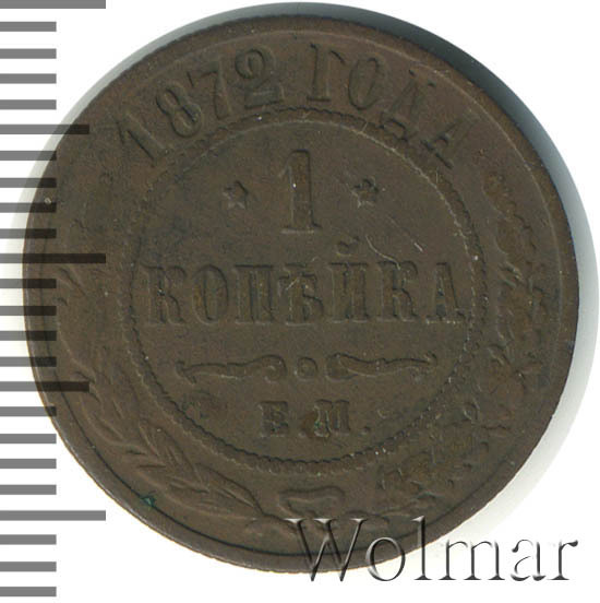 Реверс монеты 1 копейка 1872 года ЕМ