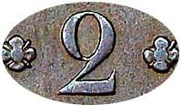 В центре указан номинал «2», ограниченный с обеих сторон цветочными розетками. Под цифрой номинала — слово "КОПЕЙКИ", под ним год выпуска монеты «1856.». Ниже, расположен декоративный разделитель в виде двух фигурных линий и небольшой точки между ними. Под разделителем обозначение монетного двора «В.М.».