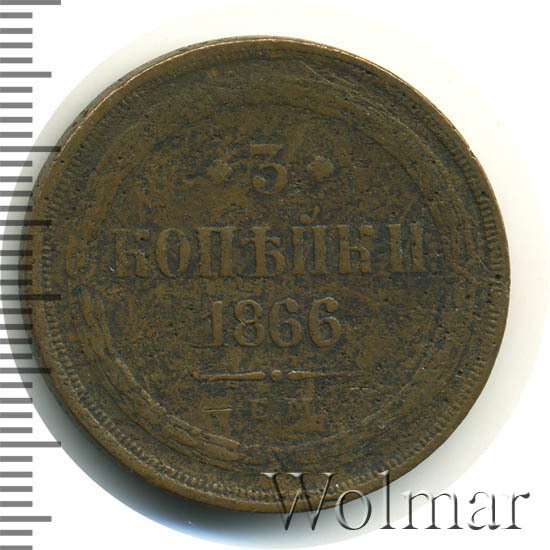 Цена на монету 3 копейки 1866 года ЕМ на сегодня, 3 декабря 2025 года