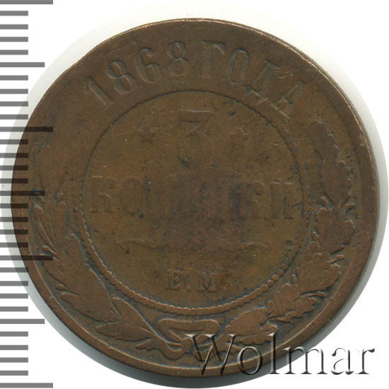 Цена на монету 3 копейки 1868 года ЕМ на сегодня, 7 марта 2026 года