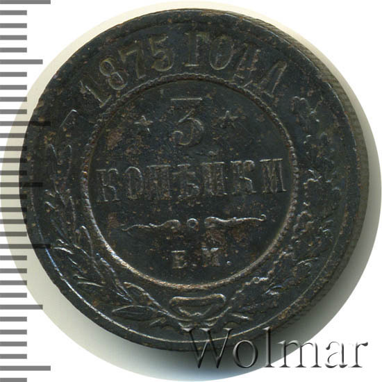 Цена на монету 3 копейки 1875 года ЕМ на сегодня, 31 декабря 2025 года