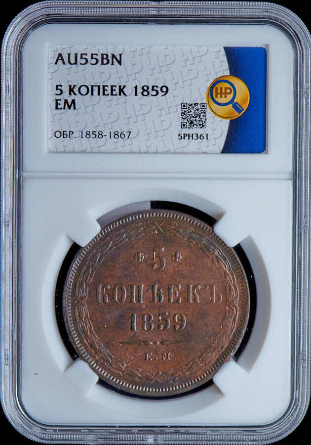 5 копеек 1859 (в слабе)буквы ЕМ Аукцион: AdaCoins Online Состояние: AU 55 BN | 11.12.2025 |