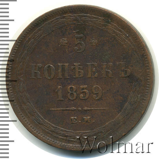 '5 копеек 1859 ЕМ нового образца'