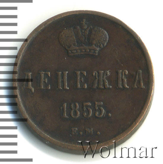 Реверс монеты денежка 1855 года ЕМ Александр II