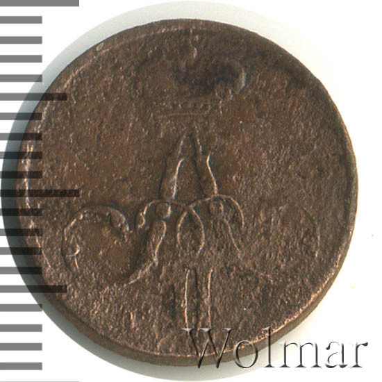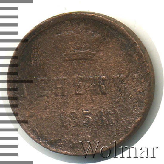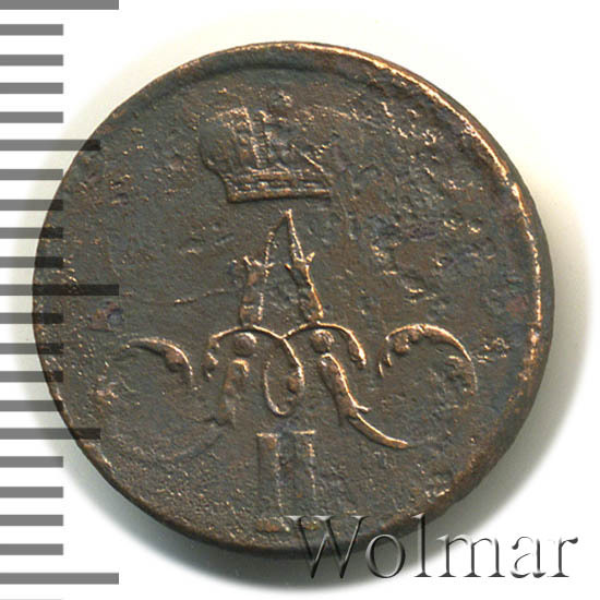 Аверс монеты денежка 1858 года ЕМ