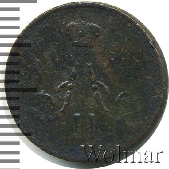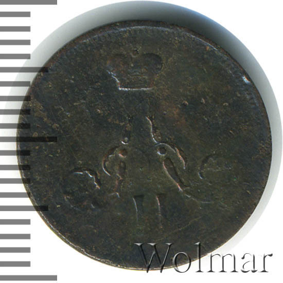 Реверс монеты денежка 1859 года ЕМ короны уже