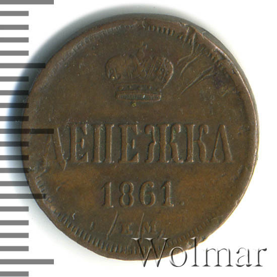 Аверс монеты денежка 1861 года ЕМ