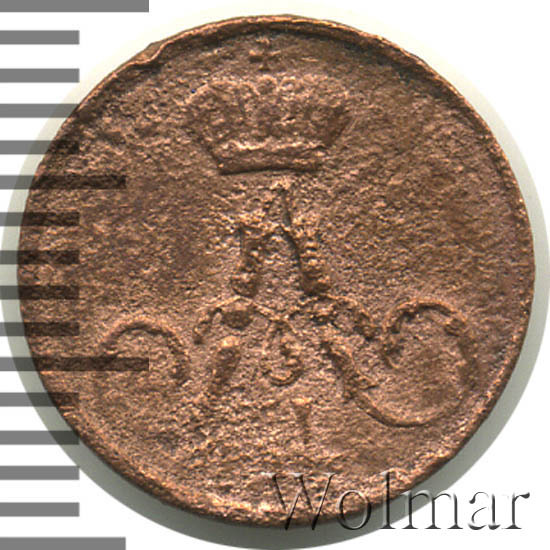 Аверс монеты полушка 1858 года ЕМ короны большие