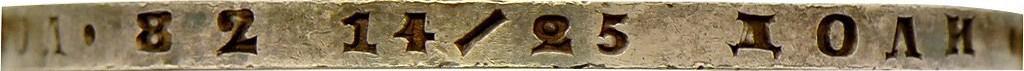 В центре изображен Малый Государственный Герб Российской империи - двуглавый орёл, головы которого увенчаны двумя коронами, третья, большая корона над ними. Все они соединены орденской лентой ордена Св. Апостола Андрея Первозванного. На груди орла расположен Московский герб, в щите изображен Георгий Победоносец с копьем поражающий дракона. Вокруг щита цепь ордена Св. Апостола Андрея Первозванного. На крыльях изображены гербы: Царства Казанского, Польского, Херсонеса Таврического, Астраханского, Сибирского, Грузинского и герб соединенных княжеств Киевского, Новгородского и Владимирского — по 4 на каждое крыло. В правой лапе орла – скипетр, в левой – держава. Под правой лапой – буква «Ф», под левой – буква «Б». Инициалы минцмейстера Федора Блюма. Центральная часть отделена от остального изображения, окружностью в виде точек. За окружностью круговая надпись: «ЧИСТОГО СЕРЕБРА 4 ЗОЛОТНИКА 21 ДОЛЯ», разделенная сверху цветочной розеткой. По окружности канта имеются рельефные элементы, выполненные в виде зубцов.