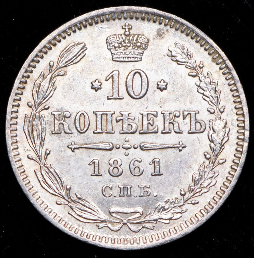 Цена на монету 10 копеек 1861 года СПБ без инициалов на сегодня, 27 января 2026 года