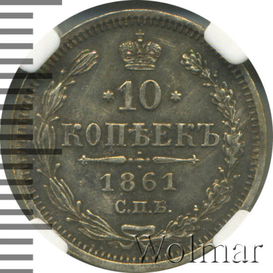 10 копеек 1861 (в слабе)буквы СПБ-ФБ Аукцион: AdaCoins Online Состояние: MS 63 | 03.04.2025 |