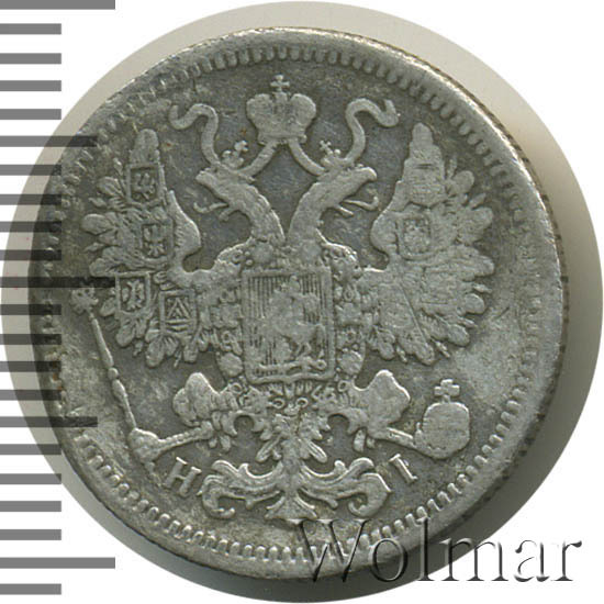 15 копеек 1867-1881, серебро 500 пробы (биллон)