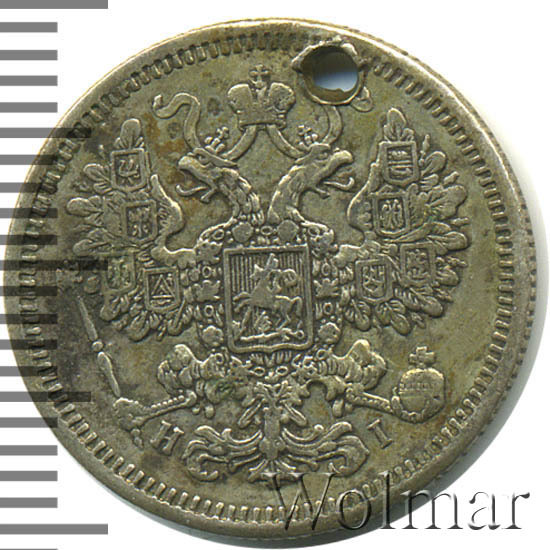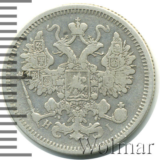 15 копеек 1867-1881, серебро 500 пробы (биллон)