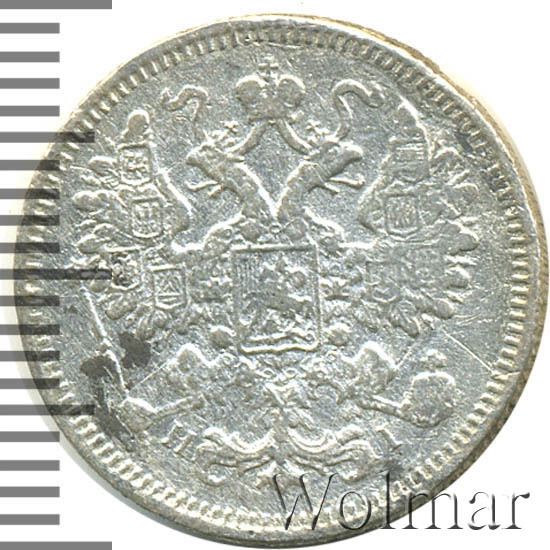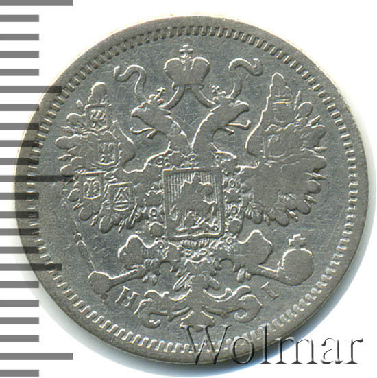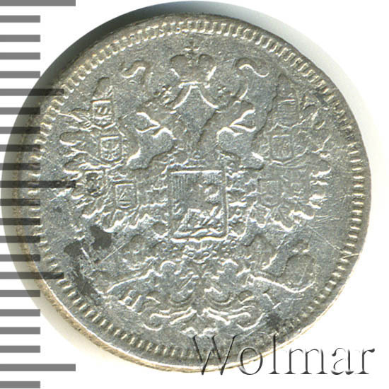 15 копеек 1867-1881, серебро 500 пробы (биллон)