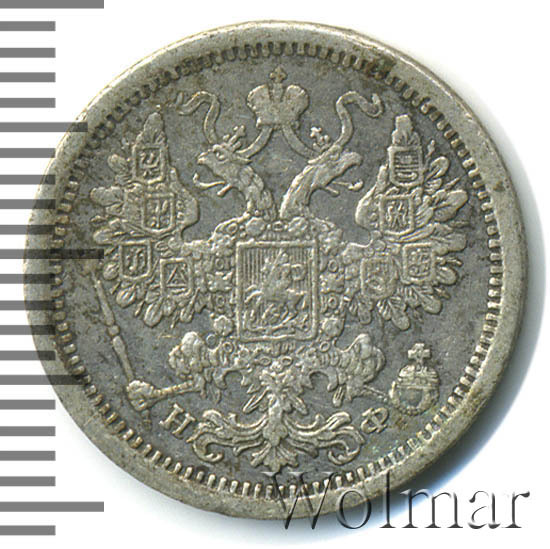 15 копеек 1867-1881, серебро 500 пробы (биллон)