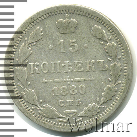 Реверс монеты 15 копеек 1880 года СПБ-НФ