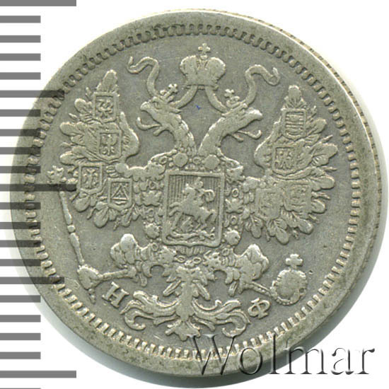15 копеек 1867-1881, серебро 500 пробы (биллон)