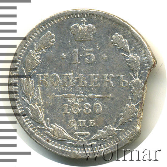 Аверс монеты 15 копеек 1880 года СПБ-НФ