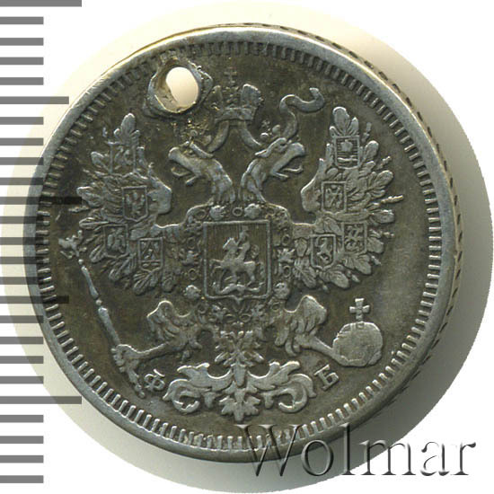 20 копеек. Заделано отверстиебуквы СПБ ФБ Аукцион: Wolmar Standart Состояние: VF- | 20.08.2025 |