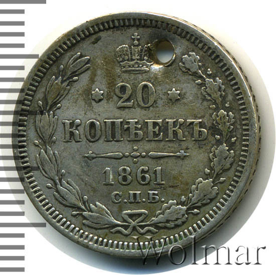 20 копеек 1861 СПБ без инициалов