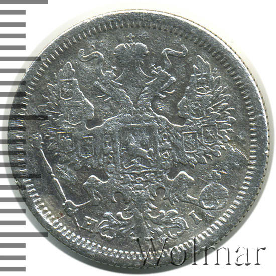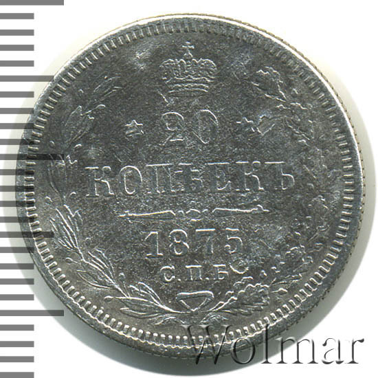 Реверс монеты 20 копеек 1875 года СПБ-HI