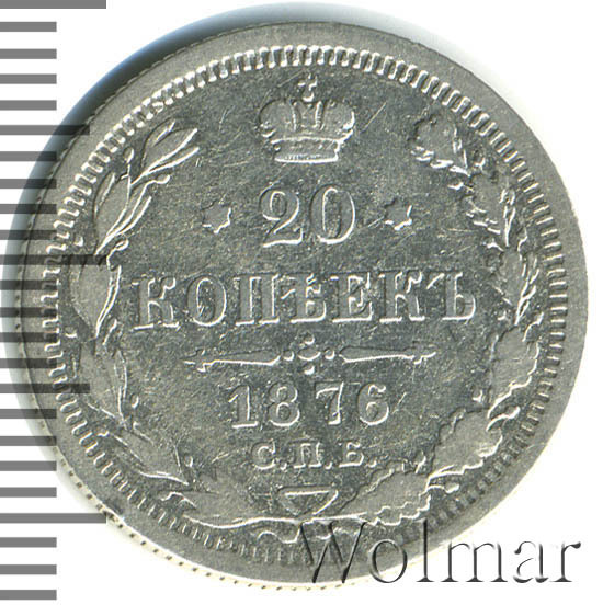 Реверс монеты 20 копеек 1876 года СПБ-HI