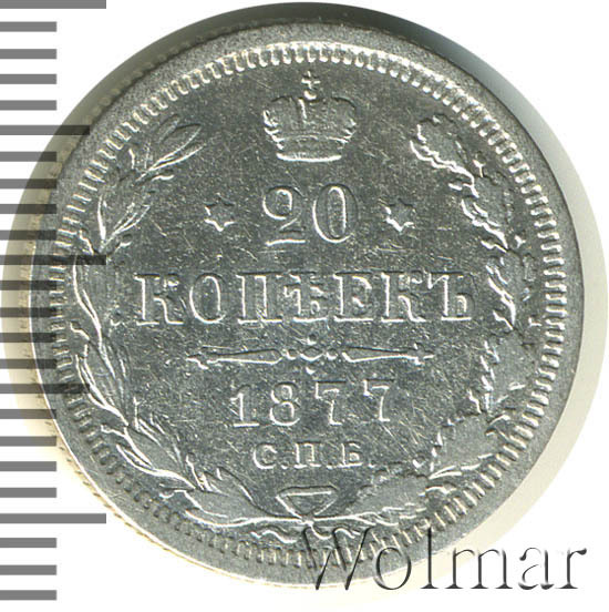 Реверс монеты 20 копеек 1877 года СПБ-НФ