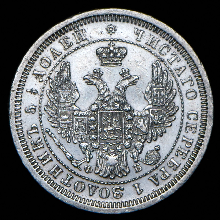 Аверс монеты 25 копеек 1856 года СПБ-ФБ