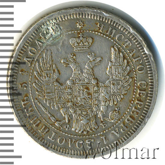 Аверс монеты 25 копеек 1857 года СПБ-ФБ