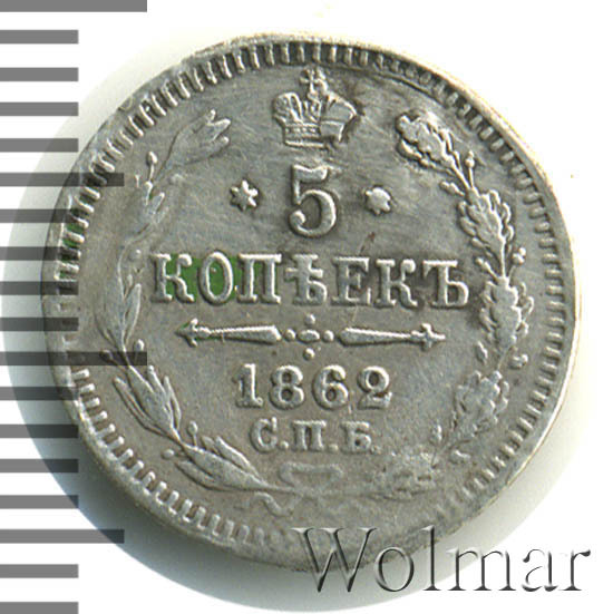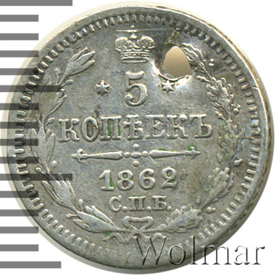 '5 копеек 1862 СПБ-МИ '