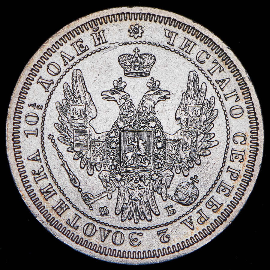 Аверс монеты полтина 1857 года СПБ-ФБ