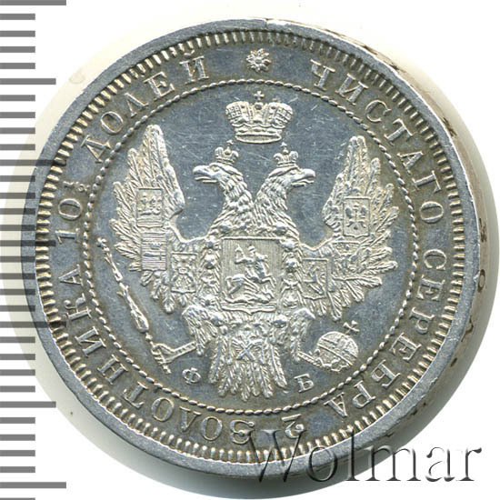 Реверс монеты полтина 1858 года СПБ-ФБ