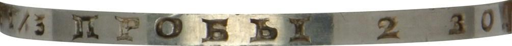 В центре изображен Малый Государственный Герб Российской империи - двуглавый орёл, головы которого увенчаны двумя коронами, третья, большая корона над ними. Все они соединены орденской лентой ордена Св. Апостола Андрея Первозванного. На груди орла расположен Московский герб, в щите изображен Георгий Победоносец с копьем поражающий дракона. Вокруг щита цепь ордена Св. Апостола Андрея Первозванного. На крыльях изображены гербы: Царства Казанского, Польского, Херсонеса Таврического, Астраханского, Сибирского, Грузинского и герб соединенных княжеств Киевского, Новгородского и Владимирского — по 4 на каждое крыло. В правой лапе орла – скипетр, в левой – держава. Под правой лапой – буква «Н», под левой – буква «I». Инициалы минцмейстера Николая Иоссы. Центральная часть отделена от остального изображения, окружностью в виде точек. За окружностью круговая надпись: «ЧИСТОГО СЕРЕБРА 2 ЗОЛОТНИКА 10 1/2 ДОЛЕЙ», разделенная сверху цветочной розеткой. По окружности канта имеются рельефные элементы, выполненные в виде зубцов.