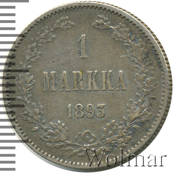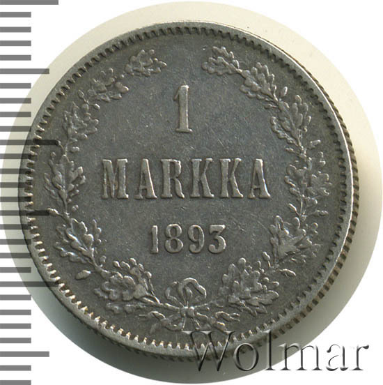 В центре - надпись в три строки: «1»│«MARKAA»│«1893». Вдоль канта изображён не замкнутый венок из двух дубовых ветвей, которые, в нижней части, перевязаны лентой на узел двойным бантом. По окружности канта имеются рельефные элементы, выполненные в виде зубцов.
