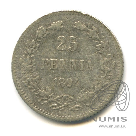 Аверс монеты 25 пенни (pennia) 1894 года L