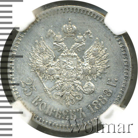 25 копеек 1888. АГ. В слабе NGC MS 62. Топ грейд. Аукцион: МS67 | 13.03.2024 |