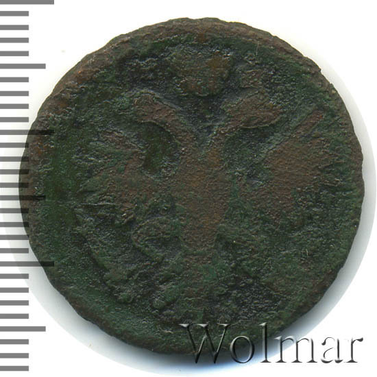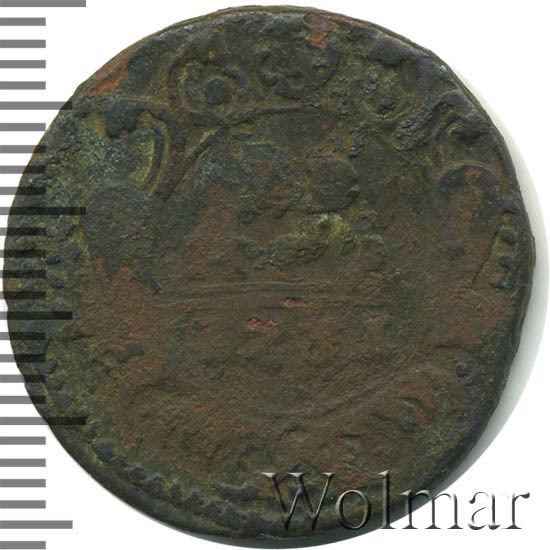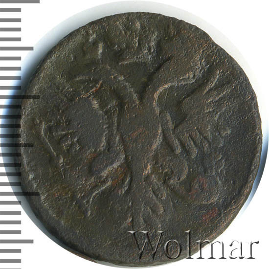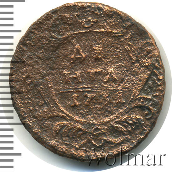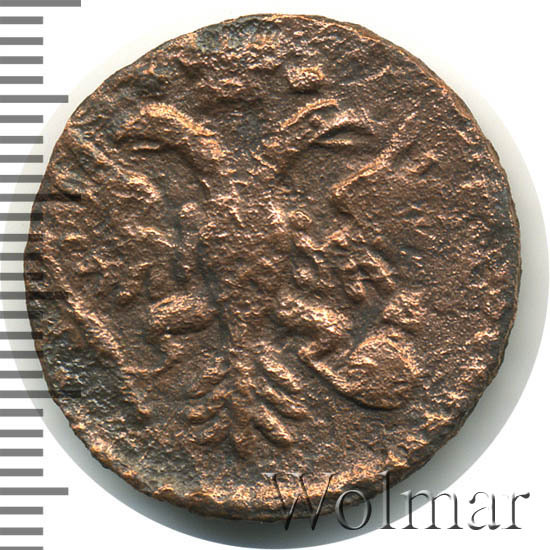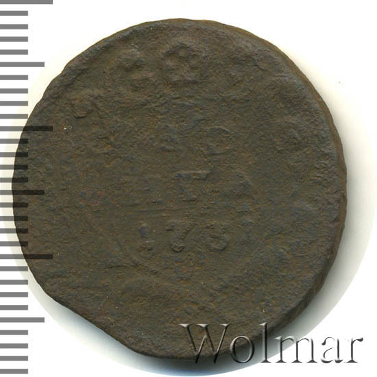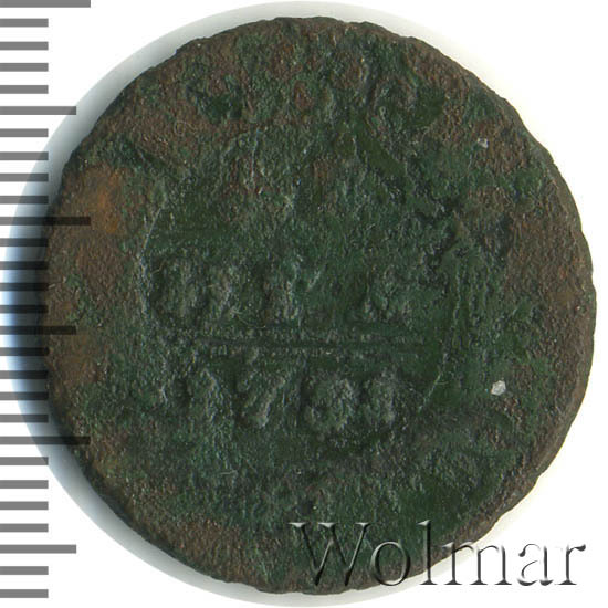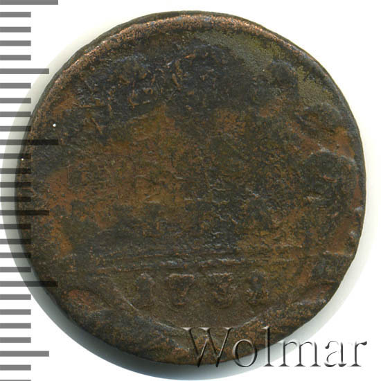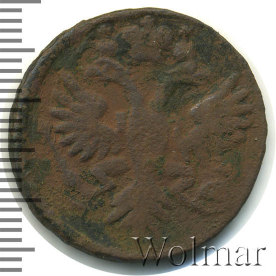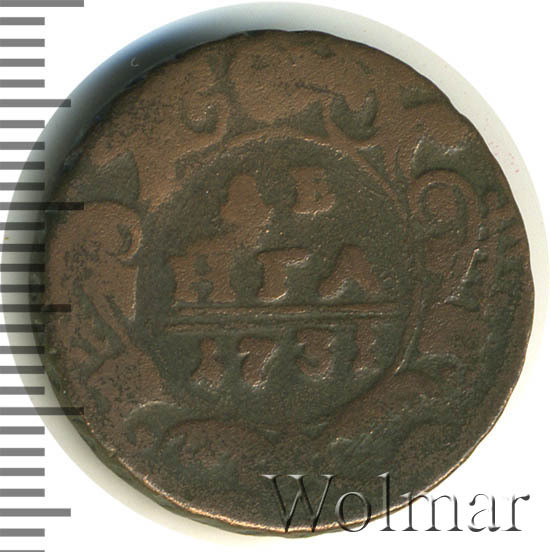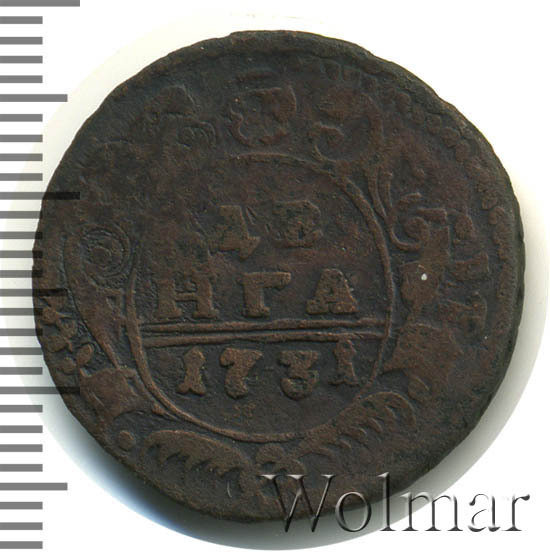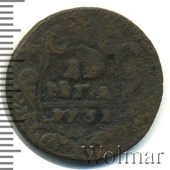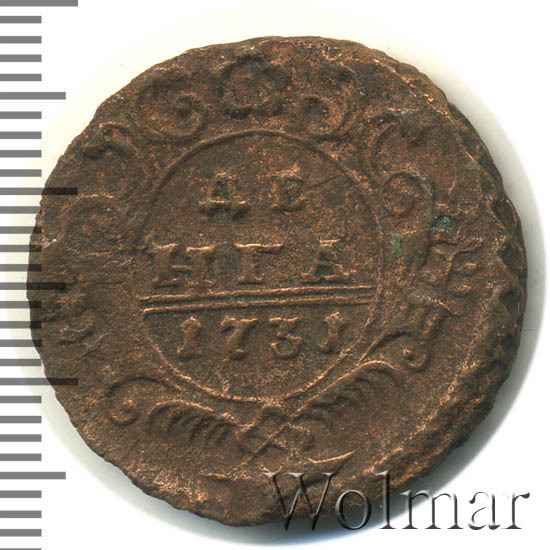 Реверс монеты денга 1731 года две черты