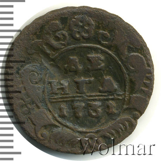 Цена на монету денга 1731 года две черты на сегодня, 23 января 2026 года