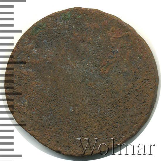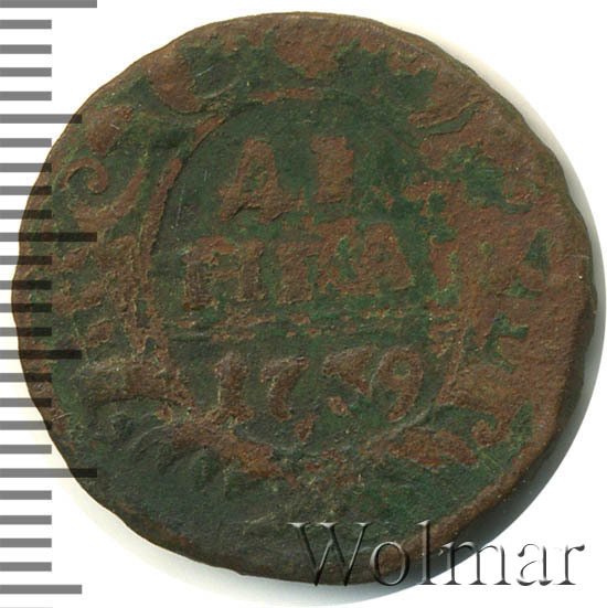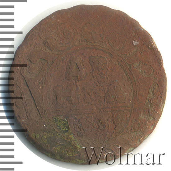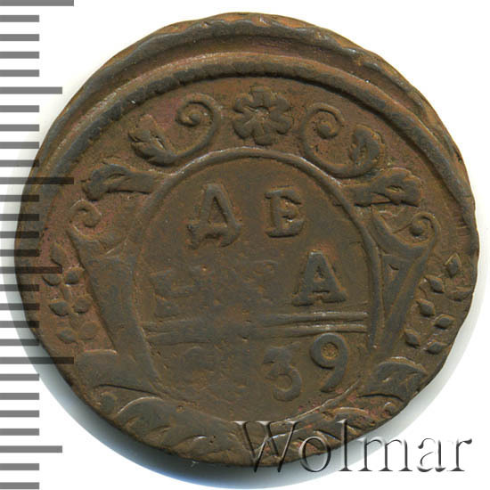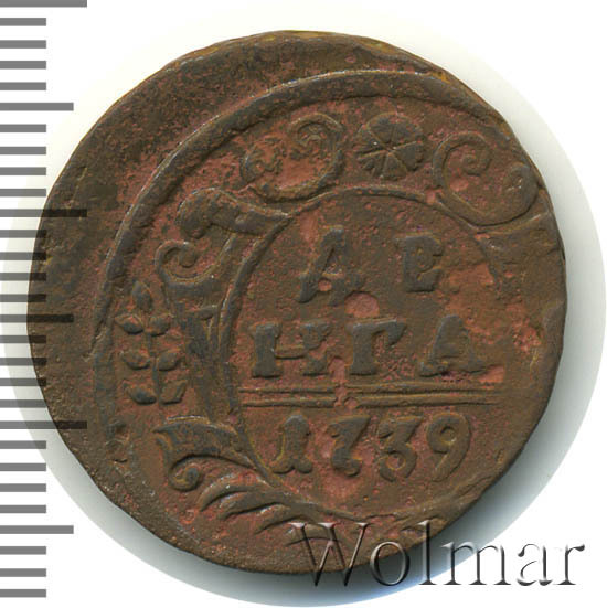 Реверс монеты денга 1739 года шесть лепестков