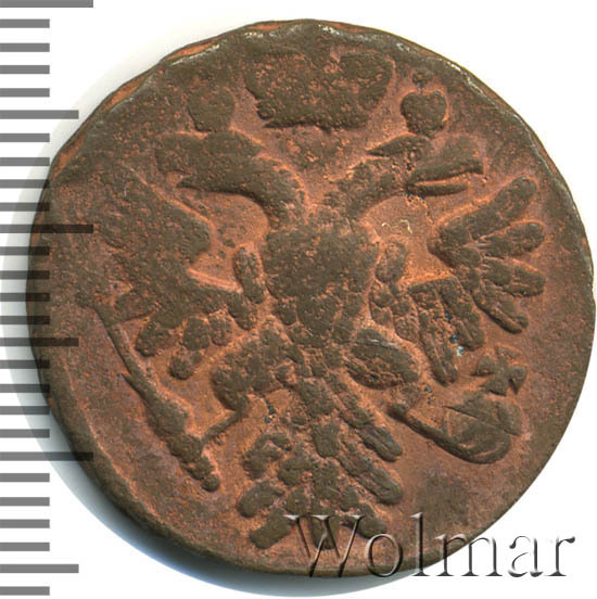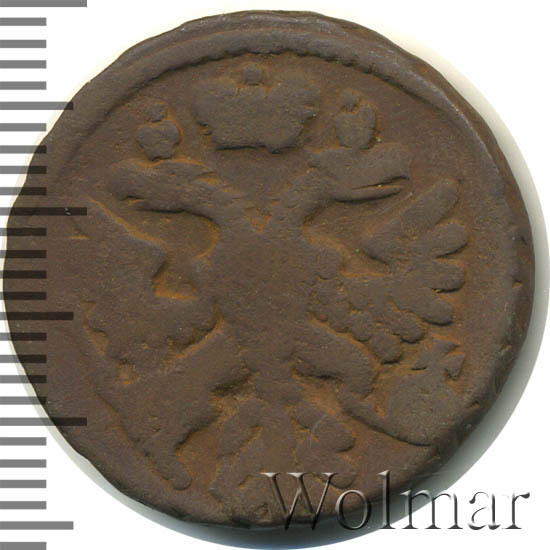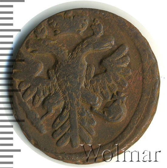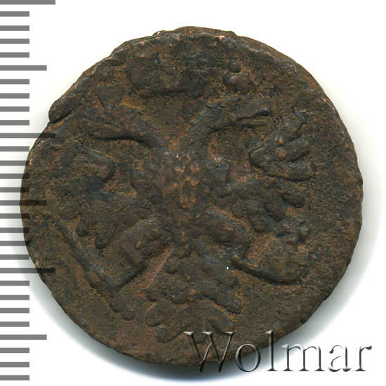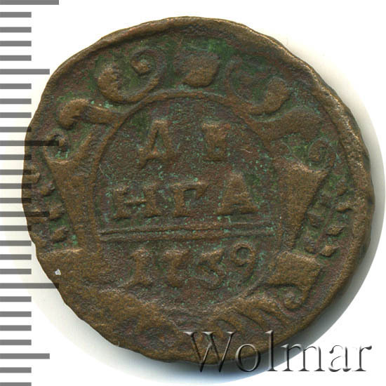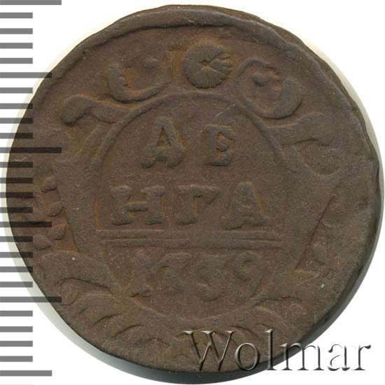 Аверс монеты денга 1739 года шесть лепестков