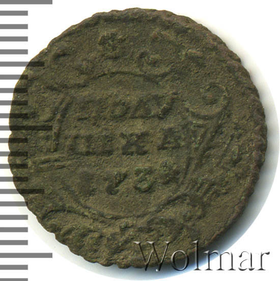 полушка 1730 на кружке денги