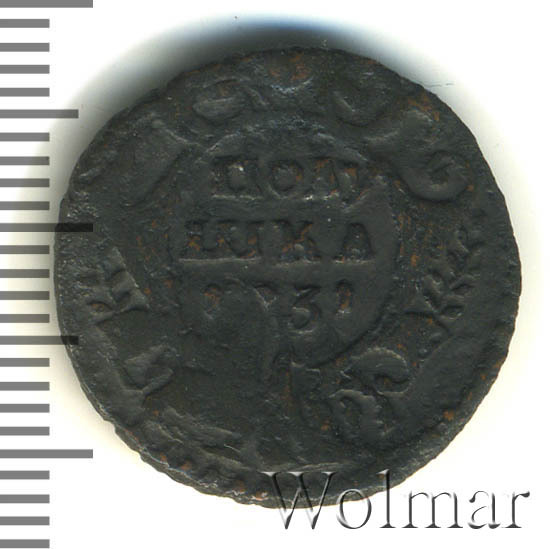 - Медные монеты Анны Иоанновны: 5 копеек 1730, денга, полушка